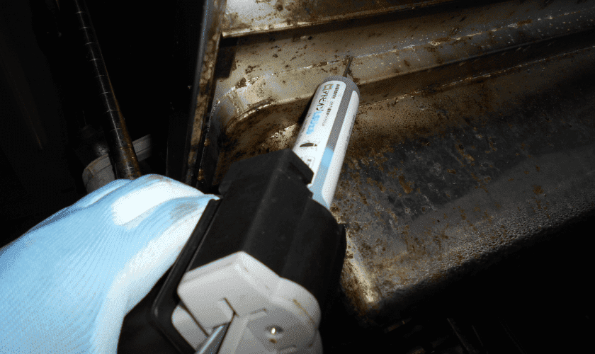 屋内への侵入経路が特定できれば、コーキング剤等で封鎖します。