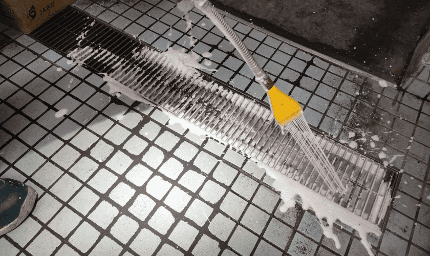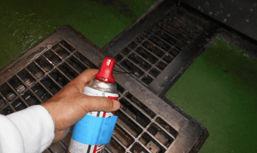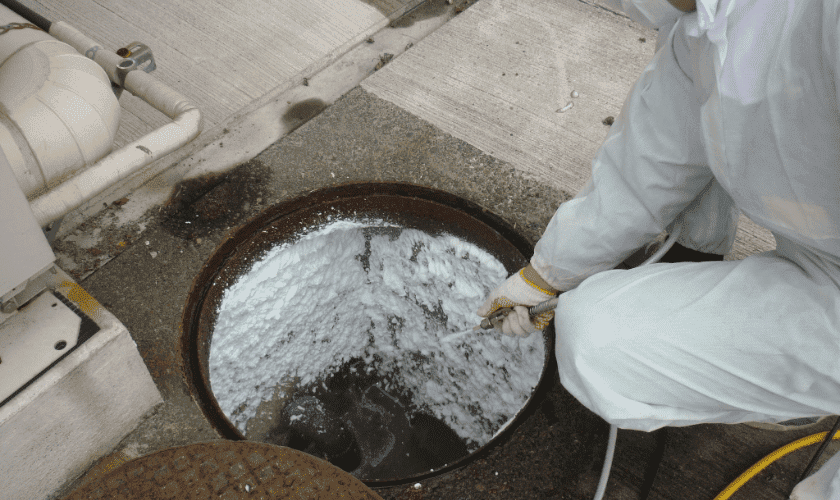 泡状薬剤を排水溝に散布