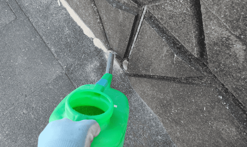 外部侵入種の場合、家の周りの犬走りなどのアリの通り道や、アリの巣を取り囲むように、薬剤を散布します。