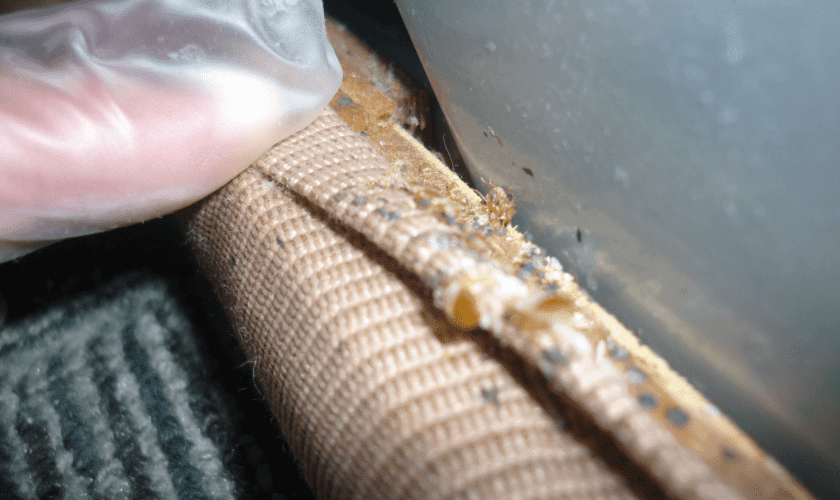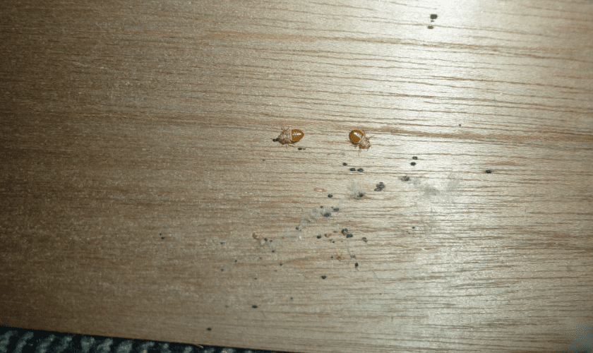 トコジラミは吸血して膨らんだ体では、潜伏場所に戻れないため、入り口に糞をして扁平な体に戻ります。