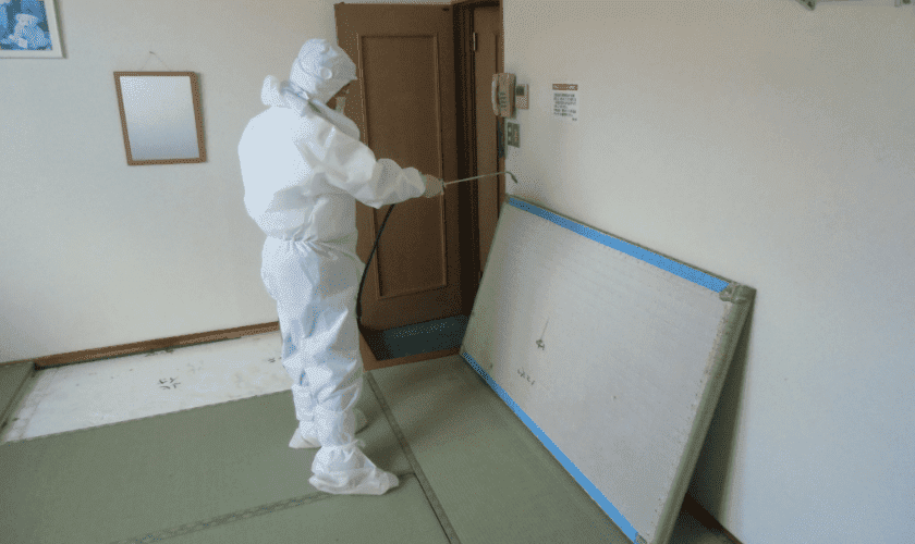 畳を上げて裏にも薬剤を噴霧します。